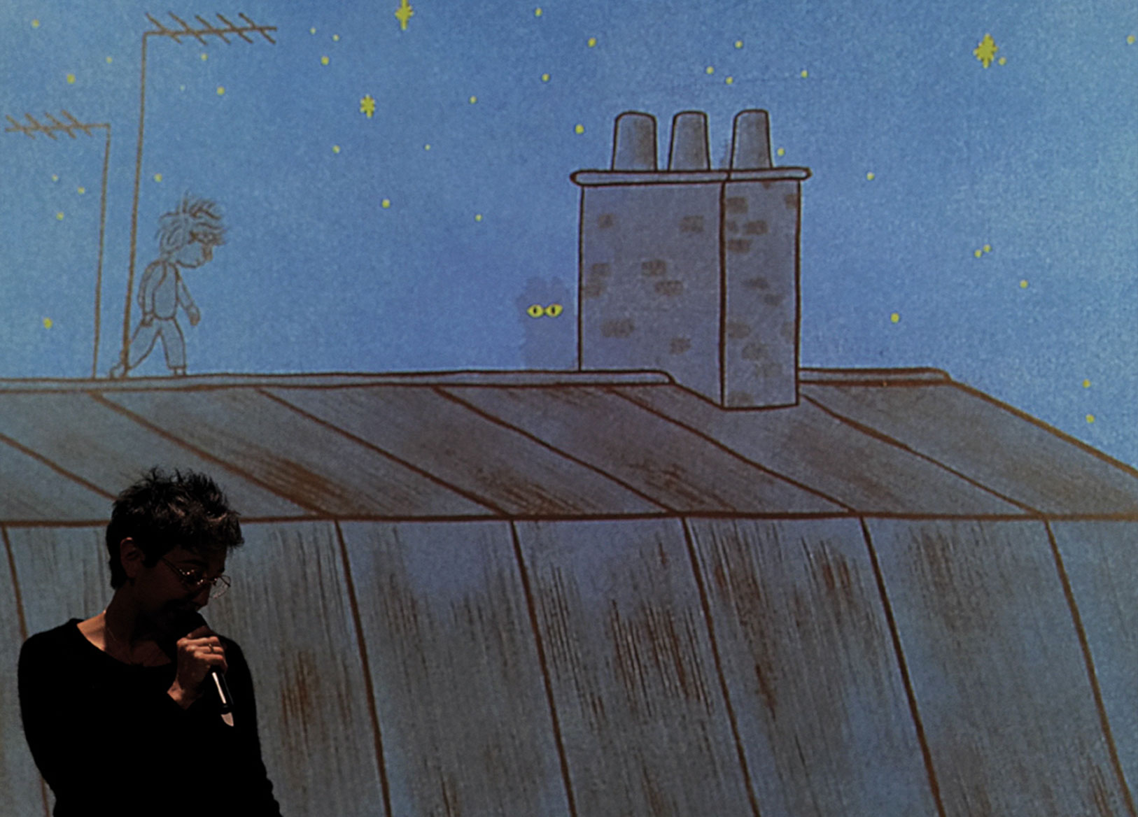 C'est un trio aux talents variés qui s'unit pour nous conter l’histoire de Hector et de Jean-Chat. Il y a d’abord Grégoire Terrier qui, avec ses claviers et sa guitare électrique, offre une musique électronique douce et feutrée ; il y a ensuite Nathaniel H'Limi qui crée, au fil de l’histoire, des illustrations poétiques avec de la peinture à l'encre et des calques ; et enfin, il y a Sabine Zovighian, autrice et narratrice, qui assure la mise en scène du spectacle et accompagne les enfants du début à la fin. Ensemble, le trio nous emmène dans une quête nocturne qui s’écoute et s’esquisse en direct. Magnifique !